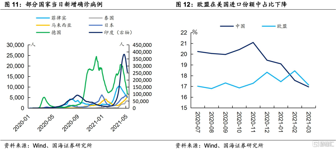 进入4月下旬,印度疫情“二次爆发”,整个亚洲出现疫情反弹的趋势,因此,在海外需求旺盛的背景下,中国产能替代并不会消退得太快,这可能是4月份以来,中国出口和贸易顺差表现较有韧劲的另一原因。