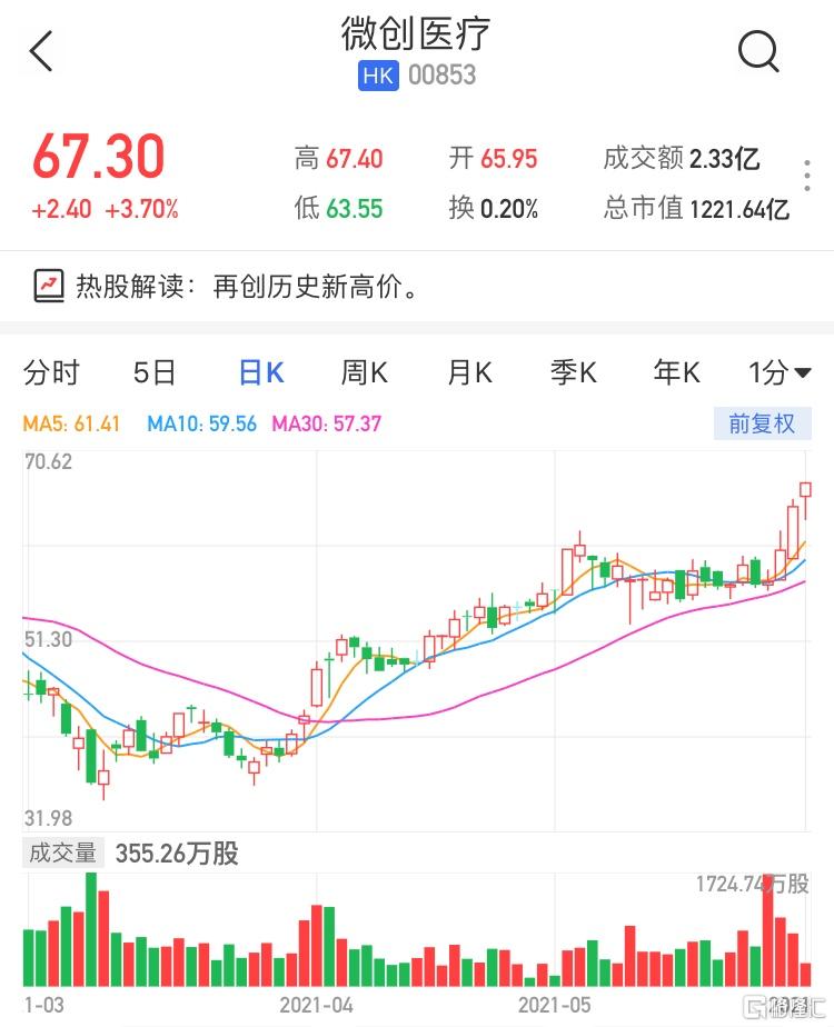 港股异动 | 微创医疗(0853.HK)续创历史新高 市值超1200亿港元