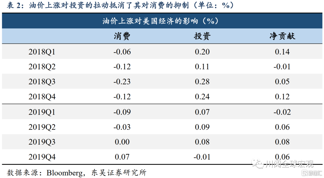 三是美欧经济的分化。我们此前的报告表明,由于页岩油的发展,近年来油价上涨通过带动出口和投资,对美国经济会产生净的正向拉动(表2)。但欧元区经济则不然,因为欧元区国家依赖原油进口,对油价的上涨缺乏弹性;同时,油价上涨传导至消费端又会挤出其他消费,因此油价上涨对欧元区经济的影响是负面的。