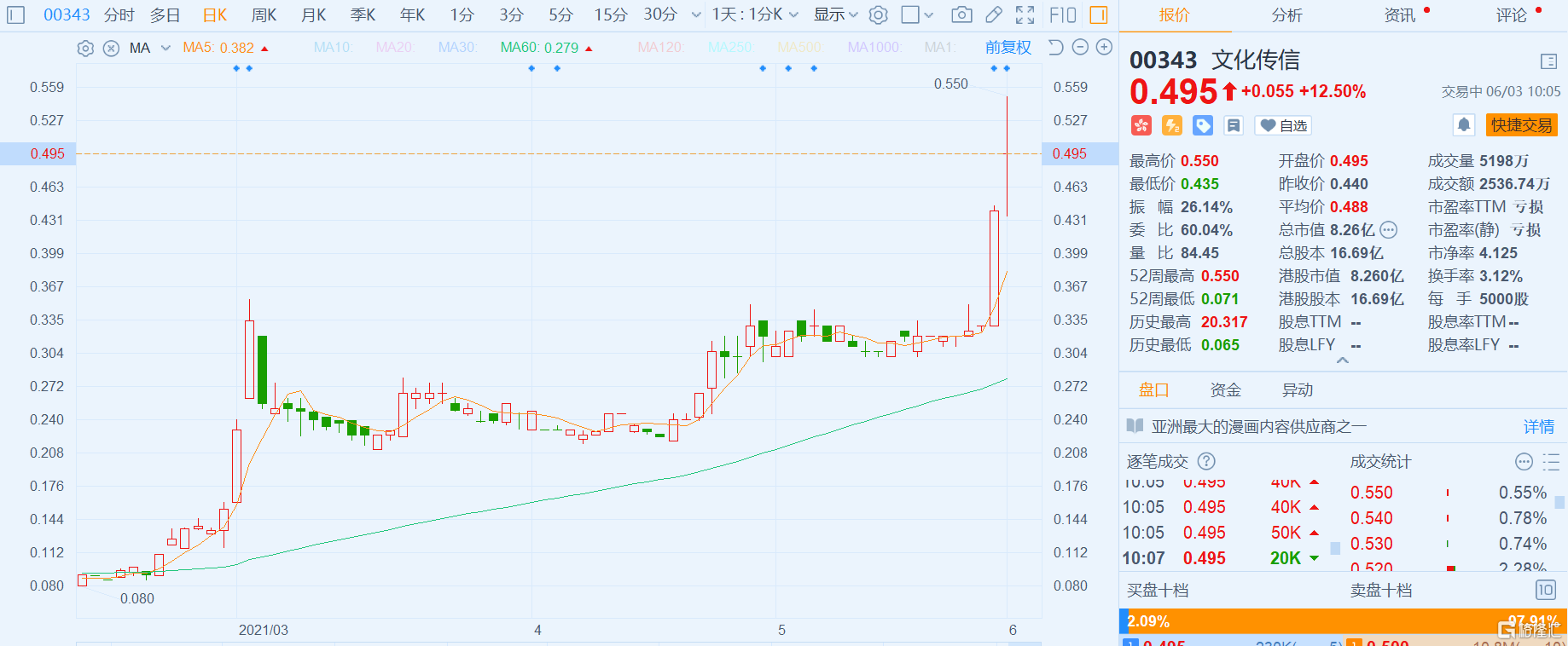 港股异动丨文化传信(0343.HK)复牌大涨12.5% 购中文人工智能企业