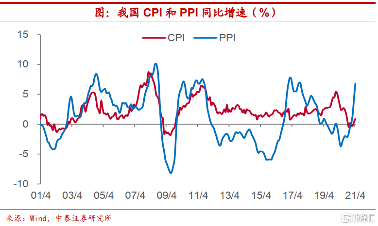 涨价传导并不顺畅。而目前来看,上游涨价向下游的传导也并不顺畅。虽然4月PPI同比增速已超过6%,但CPI同比增速仍不足1%,核心CPI同比增速尚不足0.8%。事实上,我们发现,自2012年以来,每一轮的高通胀均呈现结构化特征,PPI和CPI增速之间的联动性有所下降,这一次并不例外。