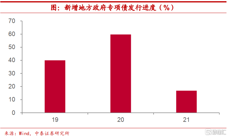 融资节奏滞后。此外,财政融资节奏相比往年同期也有所滞后,一定程度上对资金环境产生干扰。如从新增地方政府专项债发行进度上来看,今年前五个月只完成了不足20%的债券发行,而2019年和2020年同期这一比例要超过40%。