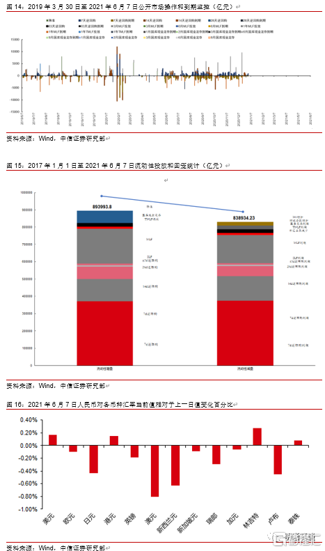 我们对市场流动性情况进行跟踪,观测2017年开年来至今流动性的“投与收”。增量方面,我们根据逆回购、SLF、MLF等央行公开市场操作、国库现金定存等规模计算总投放量;减量方面,我们根据2020年12月对比2016年12月M0累计增加21321.37亿元,外汇占款累计下降8025.20亿元、财政存款累计增加21581.4亿元,粗略估计通过居民取现、外占下降和税收流失的流动性,并考虑公开市场操作到期情况,计算每日流动性减少总量。同时,我们对公开市场操作到期情况进行监控。