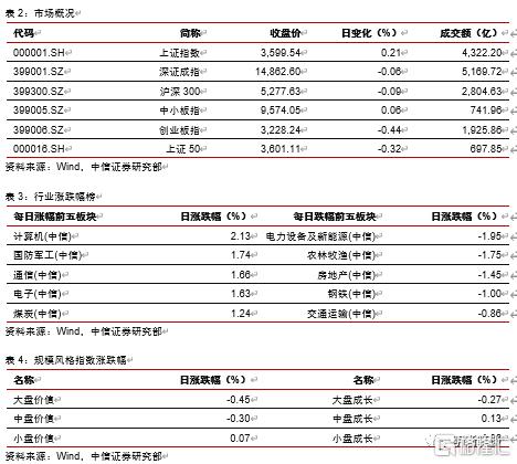 2021年6月7日,银存间质押式回购加权利率大体上行,隔夜、7天、14天、21天和1个月分别变动了33.17bps、11.23bps、6.37bps、-0.28bps和8.43bps至2.18%、2.17%、2.14%、2.09%和2.28%。国债到期收益率整体上行,1年、3年、5年、10年分别变动1.82bps、3.34bps、1.97bps和1.75bps 至2.41%、2.84%、2.99%和3.11%。上证综指上涨0.21%至3599.54点,深证成指下降0.06%至14862.60点,创业板指下降0.44%至3228.24点。