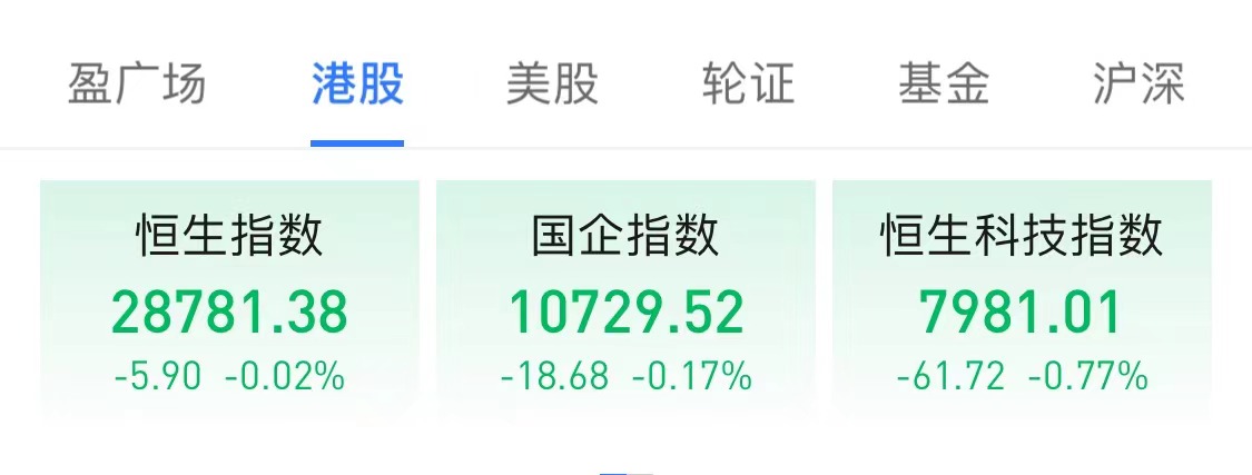 港股主要指数集体收跌,恒指跌0.02%报28781.38点,国指跌0.17%报10729.52点,恒生科技指数跌0.77%报7981.01点。大市成交额为1226亿港元,南下资金净卖出17.68亿港元。