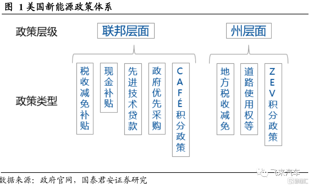 美国从2005年开始直接补贴新能源汽车行业,联邦和各个州政府不断加码政策。在政策层级分为联邦层面和州层面,联邦层面以补贴和积分政策为主,州层面以加州为首实施ZEV积分政策和地方性补贴措施。