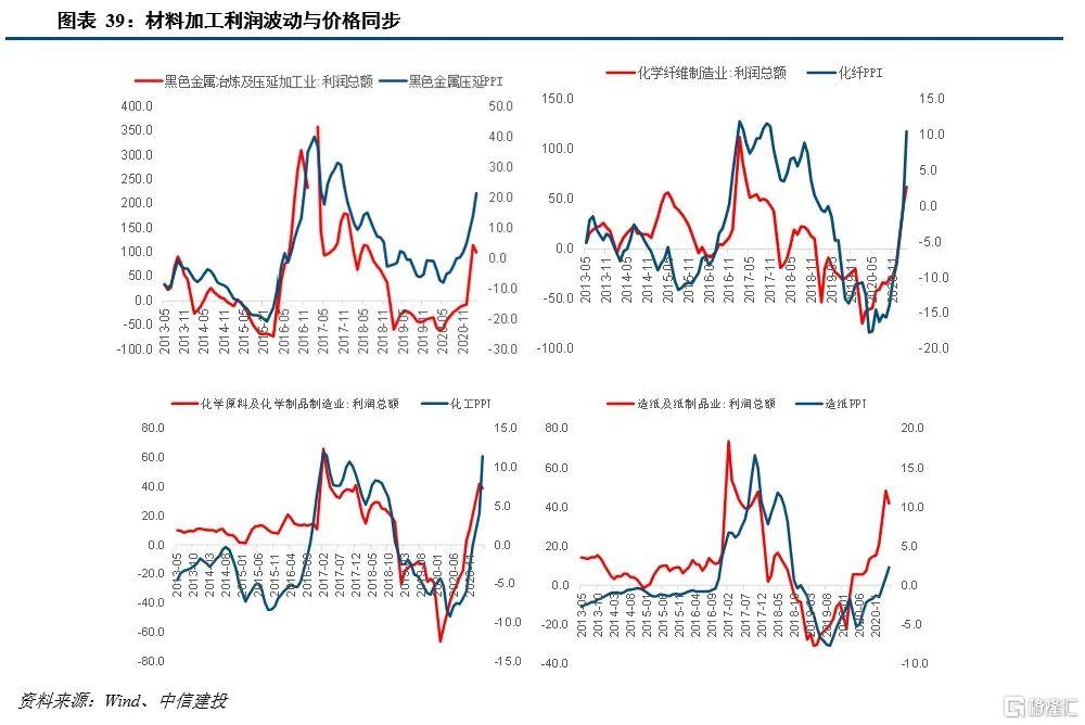 我们将工业企业的30个行业对应到PPI的小分类中,虽然略有偏差,但基本方向上也可以解释价格变动对利润的变化趋势。