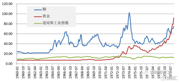 第一個階段,日德崛起,美國衰落,股弱、銅強、金漲:1960-1979。
