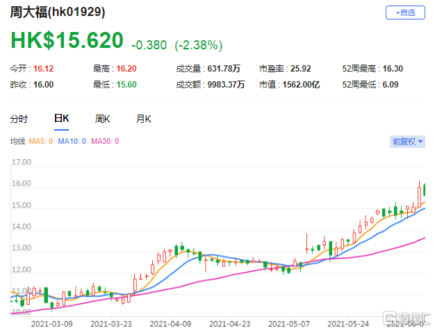 富瑞:维持周大福(1929.HK)持有评级 目标价上调至15.8港元