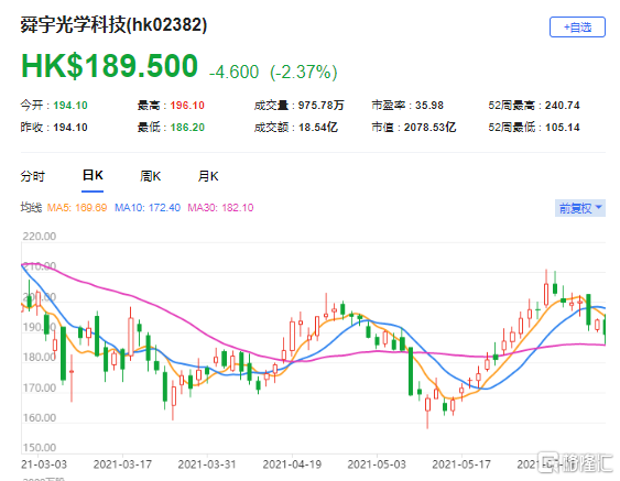 大摩:维持舜宇(2382.HK)“增持”评级 目标价208港元