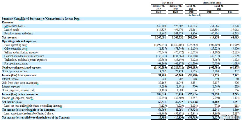 此外积极的是,招股书披露,亚朵加盟商的投资回收期一般在酒店开业后的3-5年,是中国中高端连锁酒店中最快的速度之一。且加盟商亦对亚朵较为认可,疫情期间也表现出较高粘性,2020年亚朵旗下31.8%的加盟商选择再次加盟。由此而言,亚朵未来扩张的基础条件较为良好。