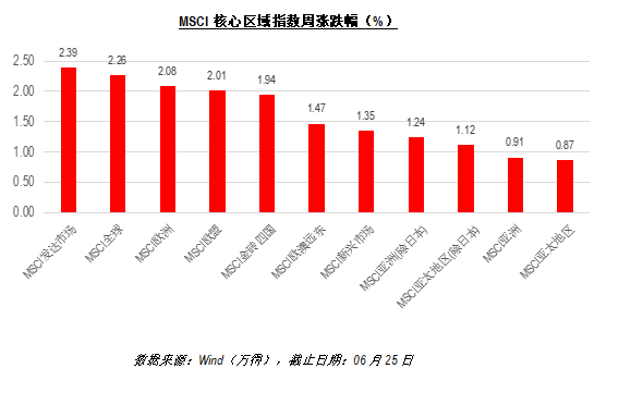 全球核心区域指数亦全线飘红,其中发达市场领涨。