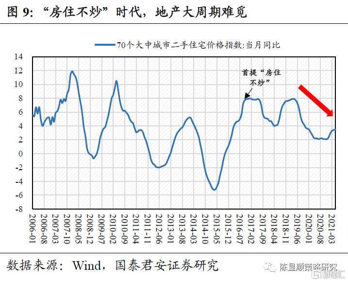 与房地产行业受到限制的同时,居民端的地产投资收益率同步下行。数据层面,70个大中城市二手住宅价格指数同比增速整体放缓。“全民炒房”一去不复返。此外,从各大类资产的投资收益率来看,国内房地产的收益率已过黄金时代,而权益等其他类型的资产则各领风骚。随着房地产税试点预期提升,从大类资产配置角度看,股票市场有望迎来更多增量资金。
