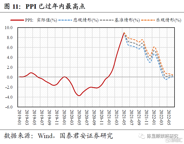 通胀高峰已过,信用收缩走出最快时刻。复盘历史上的信用收缩,往往是发生在通胀水平引起决策层关注之后,经济表现出过热或者滞胀的特征,决策层开始进行调控而造成信用进一步回落。3月以来随着PPI快速走高,市场走入通胀迷雾,不确定性高企下行情走不出震荡格局。至5月下旬,市场关心的通胀、流动性等问题不确定性逐渐收敛。其中,国内5月PPI在低基数影响下同比高增9.0%如期见顶,四季度可能出现的次高点难超5月,年内高点已现。从CPI来看,5月同比上涨1.3%未及预期,央行对CPI全年2%以下的判断亦显示通胀无忧。此外,5月社融增速较上月回落0.7个点,最快的下行阶段基本结束。随着通胀高点已现,信用收缩的幅度有望逐步缓和,利率下行的核心制约显著缓解。