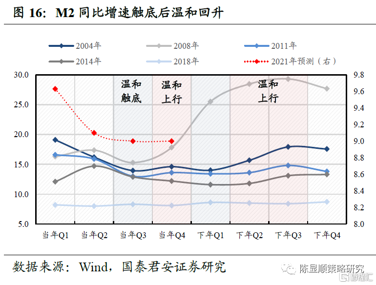 盈利出现负增长拐点时,同期经济增长压力亦较大。我们观察到历次盈利负增长拐点出现时,实际GDP同比增速在当季与前一季均呈明显下滑态势,经济增长压力较大。但压力之下,流动性越是易松难紧。