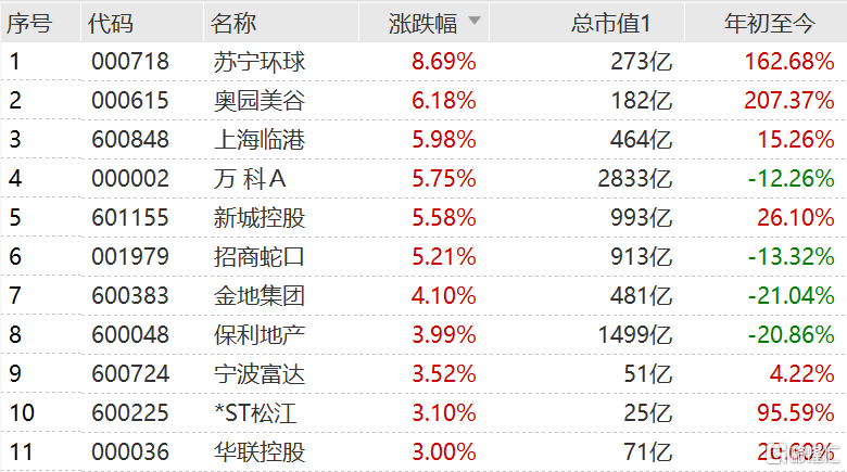 地产股涨幅扩大 万科A涨6%