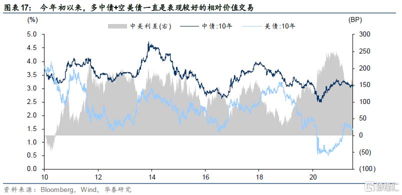 5、估值:债市绝对收益率水平一般,但相比股市有一定吸引力,中美利差近期反而收敛,利率水平仍处于合理区间,信用利差处于历史低位;