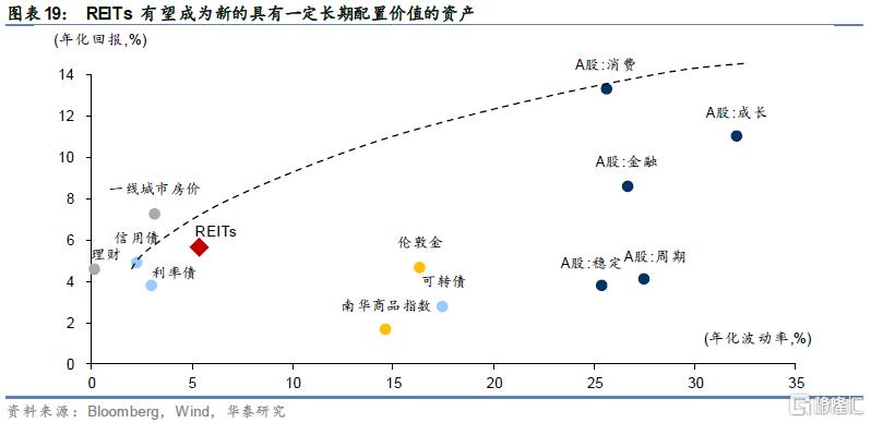 我国虽然相比海外发达市场,金融工具种类仍有差距(如缺少通胀连接债券等、衍生品等对冲工具相比境外市场仍不够丰富),但也在持续丰富,如6月21日集中上市的首批9只基础设施公募REITs产品就是新的工具。参照2015年7月成立的“类REITs”基金鹏华前海万科REITs,其过往年化收益率近6%,年化波动率接近债券,期限更长,本身就是良好的长期配置品种。尤其是公募REITs产品,保险等机构可以选择会计处理方式,提供了更多灵活性。当然其流动性与期限并不一定适合所有投资者,仍需要结合投资者资金性质与收益目标进行考虑。