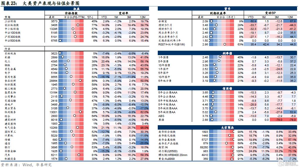 大类资产:股市板块景气度与估值呈正比,信用利差仍处于历史低位