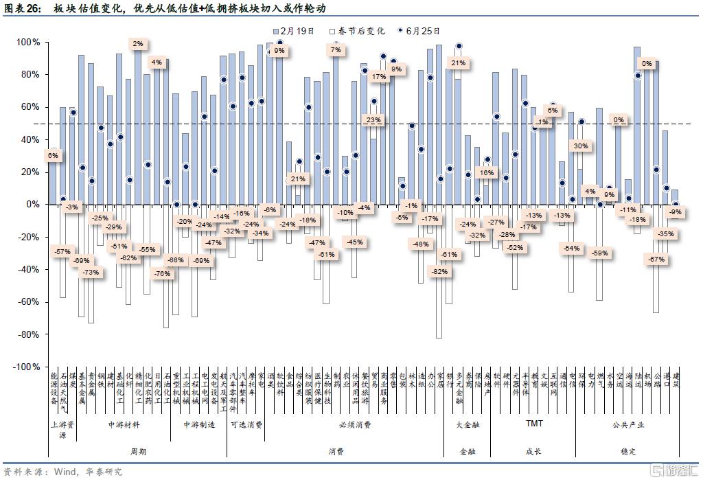 5、相对价值:股市绝对估值水平已不便宜,相对债市不占优,但分化仍十分明显。银行理财变身风险资产之后,加上房住不炒,长期来看股市仍是居民资金主要流向。
