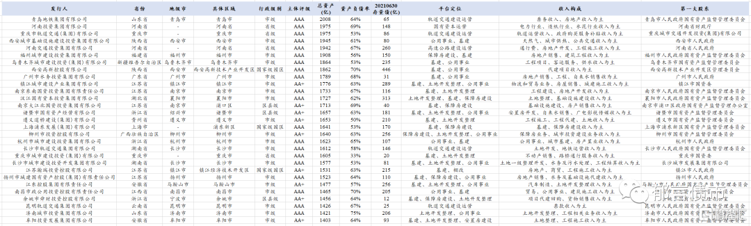 截至2021年6月30日,全国发债城投平台共有2903家,较2021Q1增加35家。其中,天津高速公路集团有限公司、河北省高速公路开发有限公司、吉林省交通投资集团有限公司、四川省交通投资集团有限责任公司、湖北省铁路建设投资集团有限责任公司等,存续债券全部到期的37家平台被移出名单。蚌埠禹会建设投资有限责任公司、亳州文化旅游控股集团有限公司、亳州交通投资控股集团有限公司、全椒全瑞投资控股集团有限公司、滁州市苏滁现代产业园建设发展有限公司等,64家首次发债平台被加入名单。