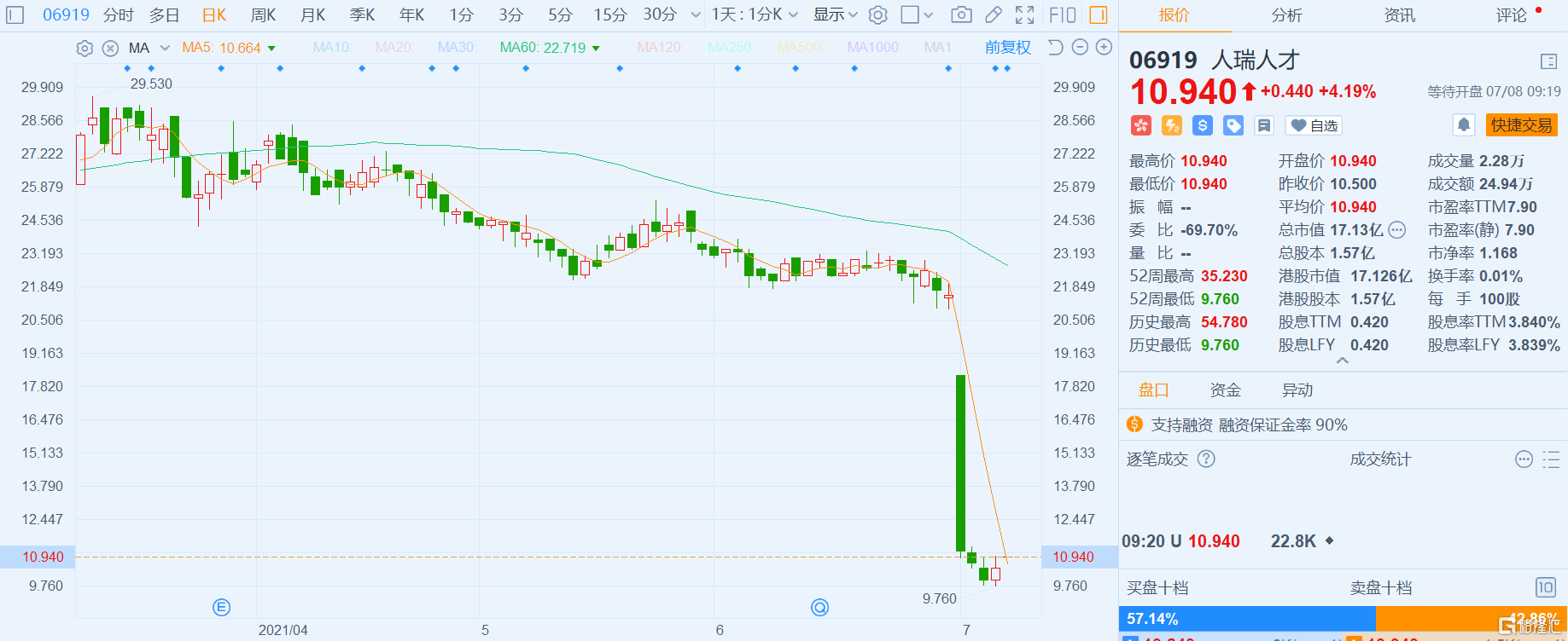 港股异动丨人瑞人才(6919.HK)高开逾4% 首六月经调整净溢利整体预增45%至55%