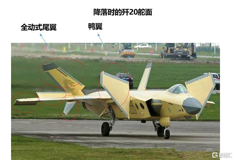 作为世界上仅有的三款隐形战斗机之一,中国的歼20为达到美国F22同等的战斗力水平,采取了鸭翼设计,就是我们上图歼20前面两只小翅膀。