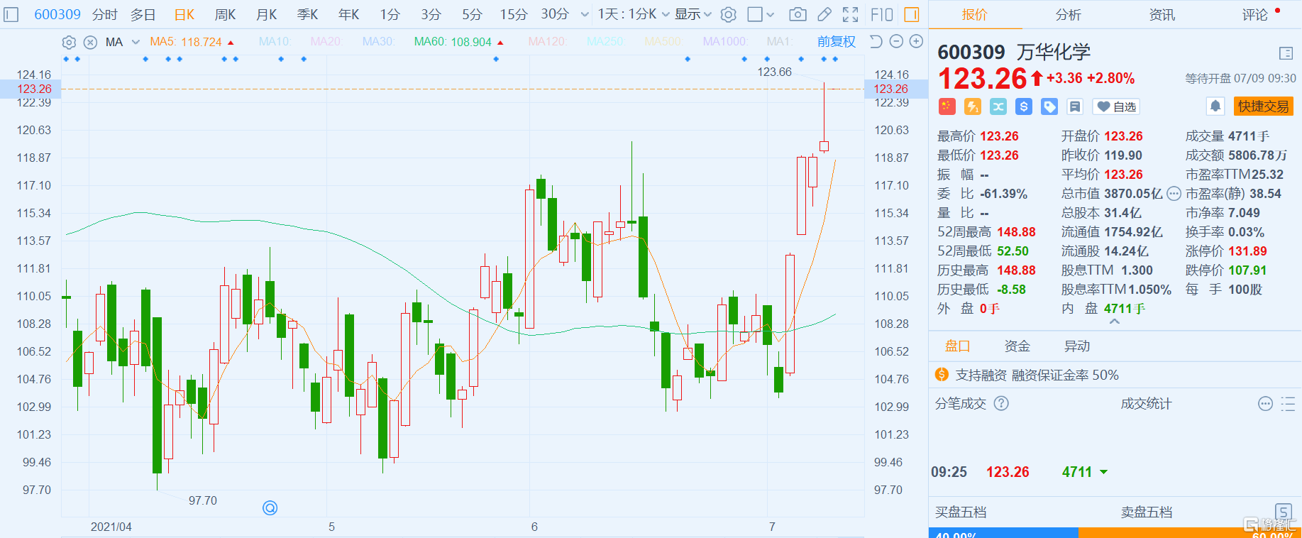 A股异动 | 万华化学(600309.SH)高开近3% 上半年净利预增373%到380%