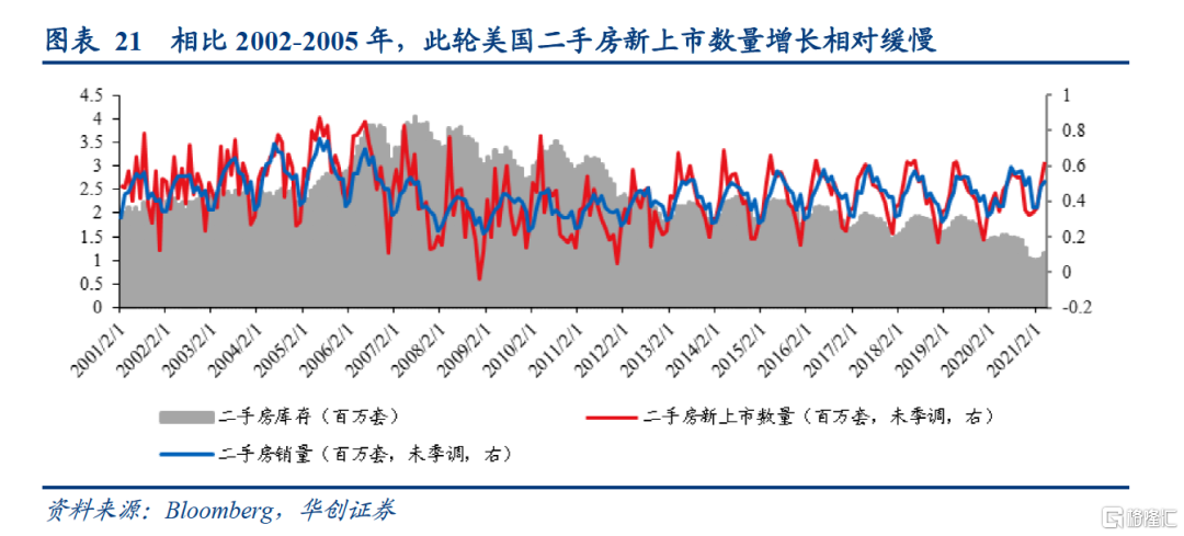 那么,为何美国新挂牌上市的二手房数量增长缓慢?一般而言,市场好的时候,二手房交易量价齐升才是常态,因为二手房并不存在供给的刚性限制,只要房价对卖方的吸引力足够,短期内就可以有大量二手房屋挂牌上市(比如2002-2005年)。我们猜测,目前二手房新挂牌上市数量增长偏慢的原因可能是受到“驱逐禁令”的影响。在驱逐禁令措施下,房主无法“驱逐”拖欠房租的房客,这会限制房主的卖房行为,从而使得二手房新上市数量增长缓慢。