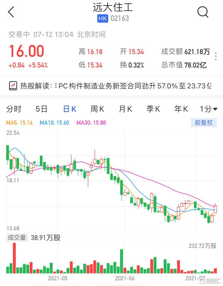 港股异动 | 远大住工(2163.HK)涨超5% 上半年PC构件制造业务新签合同同比上升57%