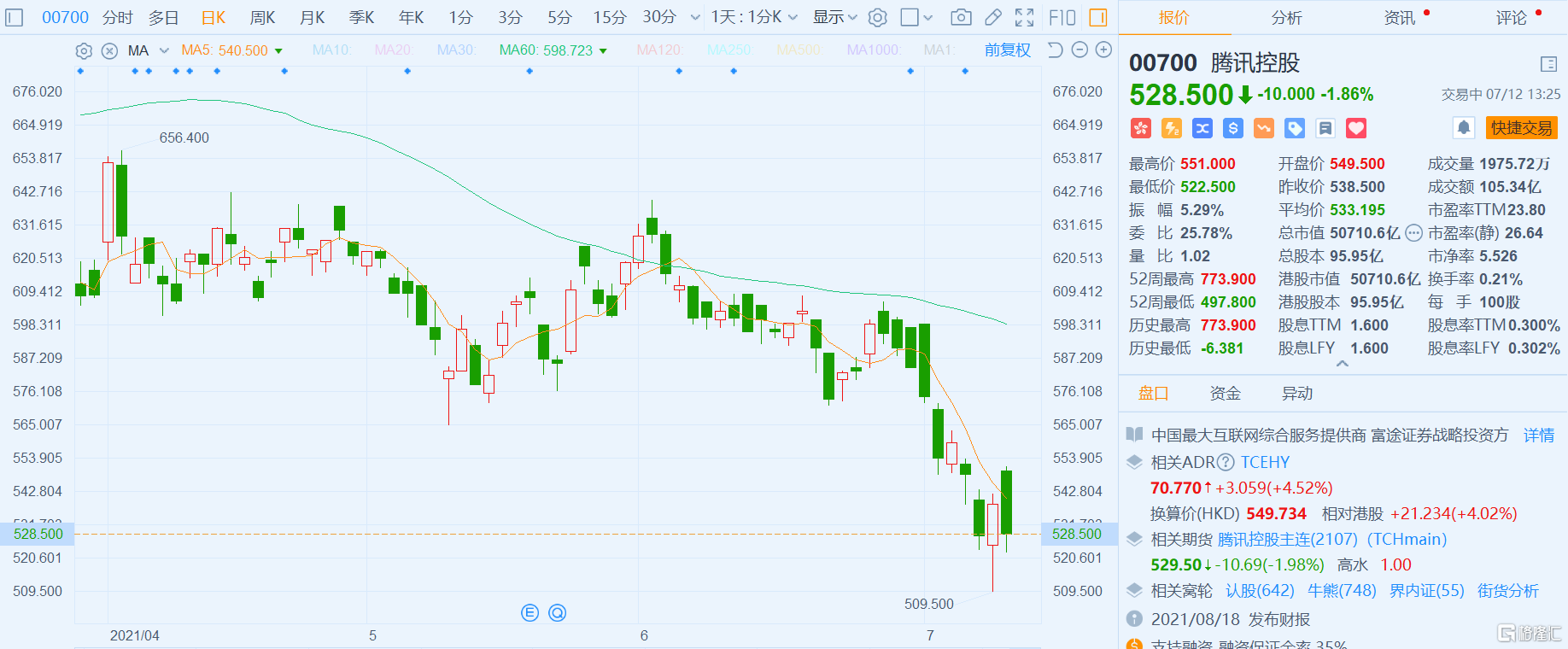 港股异动丨腾讯(0700.HK)高开低走跌2% 虎牙斗鱼合并告吹