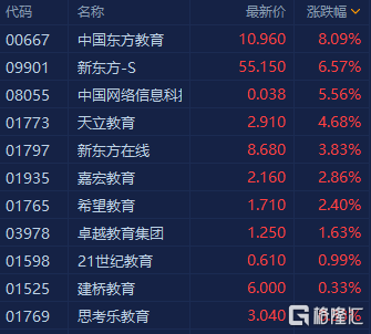 盘面上,教育股大幅反弹领涨,生物医药股走强明显,康宁杰瑞、金斯瑞生物科技均创历史新高;医美概念股再度活跃,煤炭股、餐饮股、啤酒股普遍上扬,海底捞升2.66%;大型科技股涨多跌少,快手、京东涨超2%,腾讯涨1%,美团跌近2%;近期强势的汽车股、电池股大幅回调,港口航运股、光伏股、航空股、保险股等下跌明显。