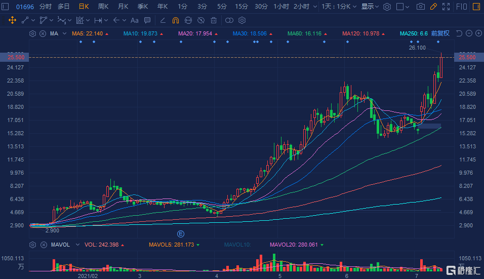 复锐医疗科技(1696.HK)大涨12%再创新高。公司昨日公告称,已完成收购上海复星医疗系统全部股权。天风证券研报指,整体来看,根据公司2021年上半年73%以上的收入增速远高于2021年初公司业绩指引中40%的收入增速,证明了公司各项发展战略的落地能力,体现了公司产品在全球受欢迎程度超出预期。调高2021年全年及未来年度盈利预测,给予公司2021年PS为7倍,对应目标价32.88港元,维持“买入”评级。