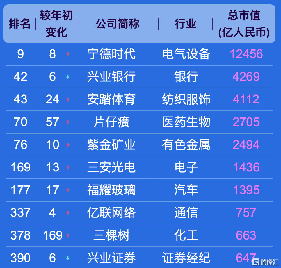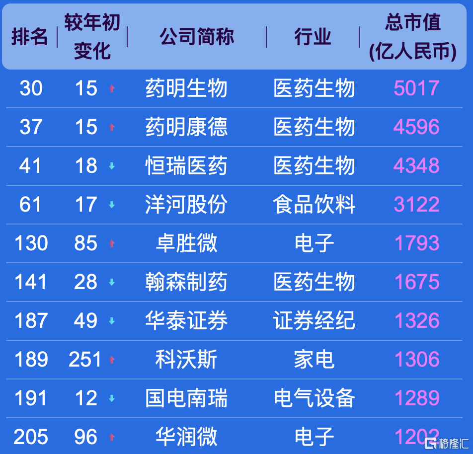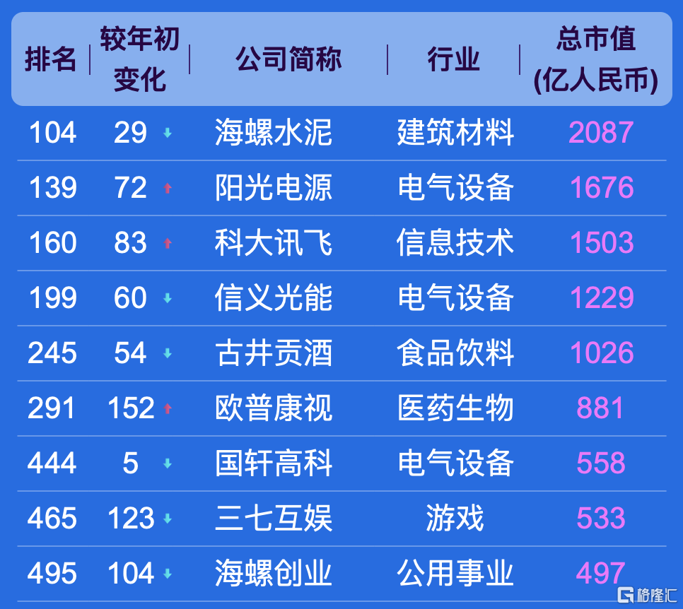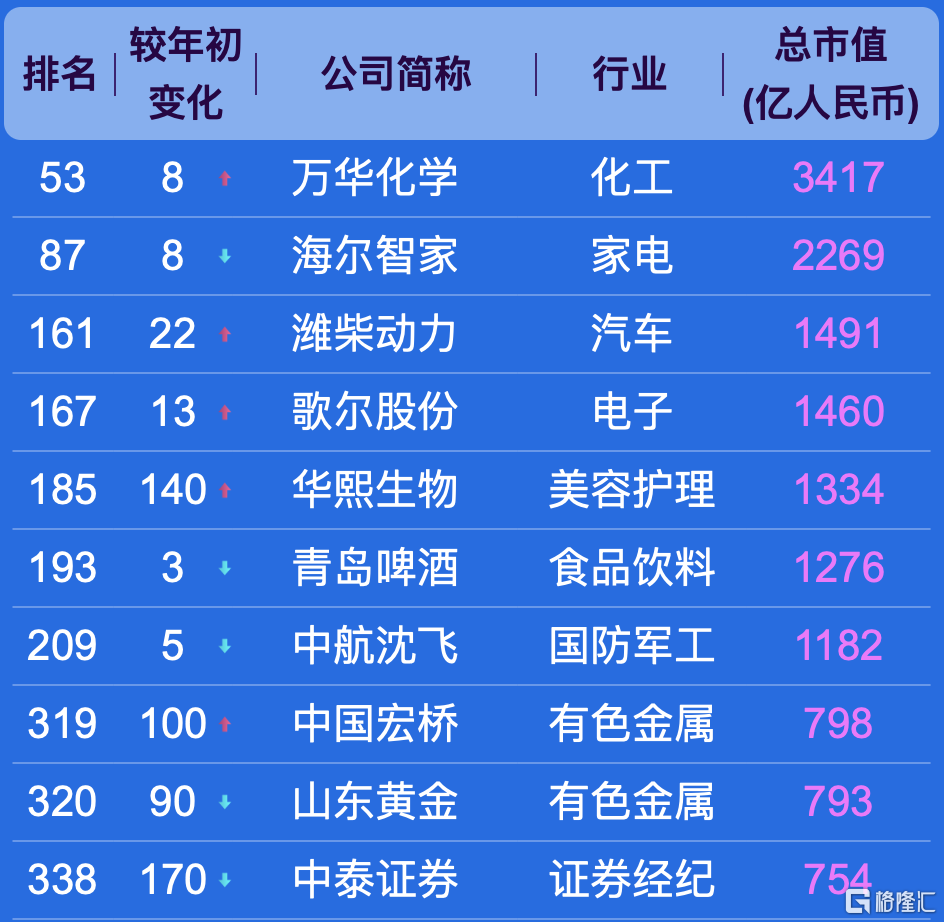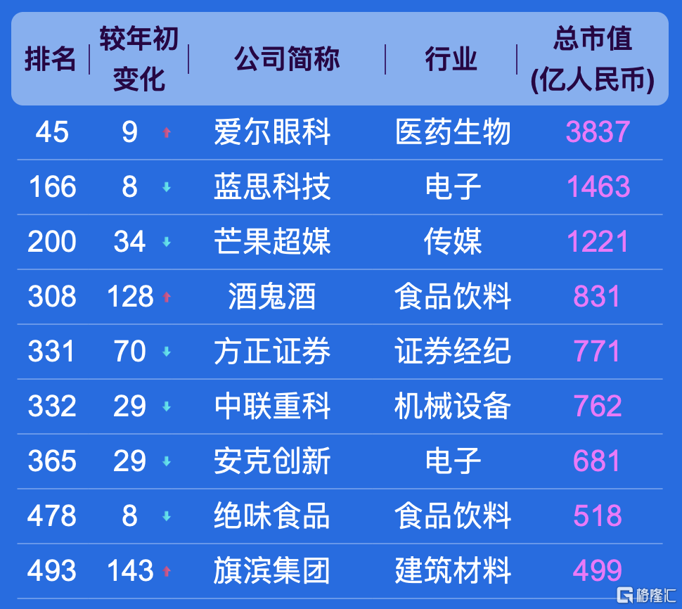 此次500强榜单,入围门槛为市值492亿元。