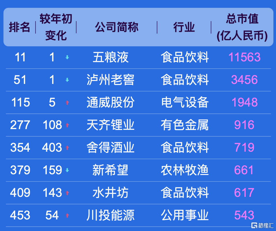四川的上市公司500强数量排全国第11,市值最高的企业为五粮液,总市值为11563亿元。