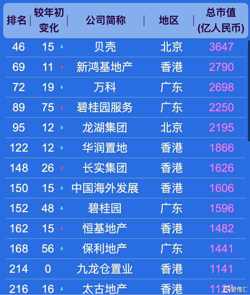 在房地产行业,市值最高的10大公司分别是贝壳、新鸿基、万科、碧桂园服务、龙湖集团、华润置地、长实集团、中国海外发展、碧桂园、恒基地产。