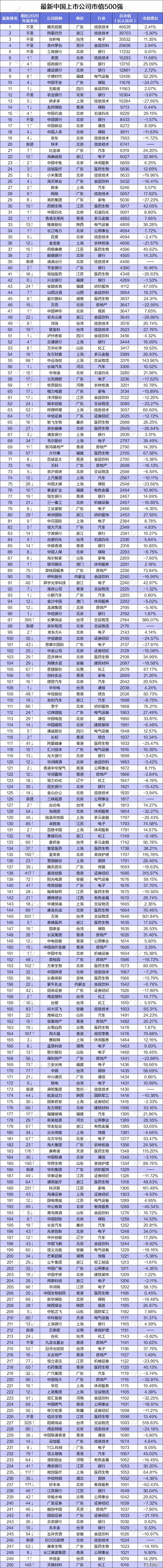 根据市值排名,21数据新闻实验室制作了一个中国上市公司500强榜单,这500家上市公司总市值约98.78万亿,占全部上市公司市值的66%左右。对此,我们来分析一下。