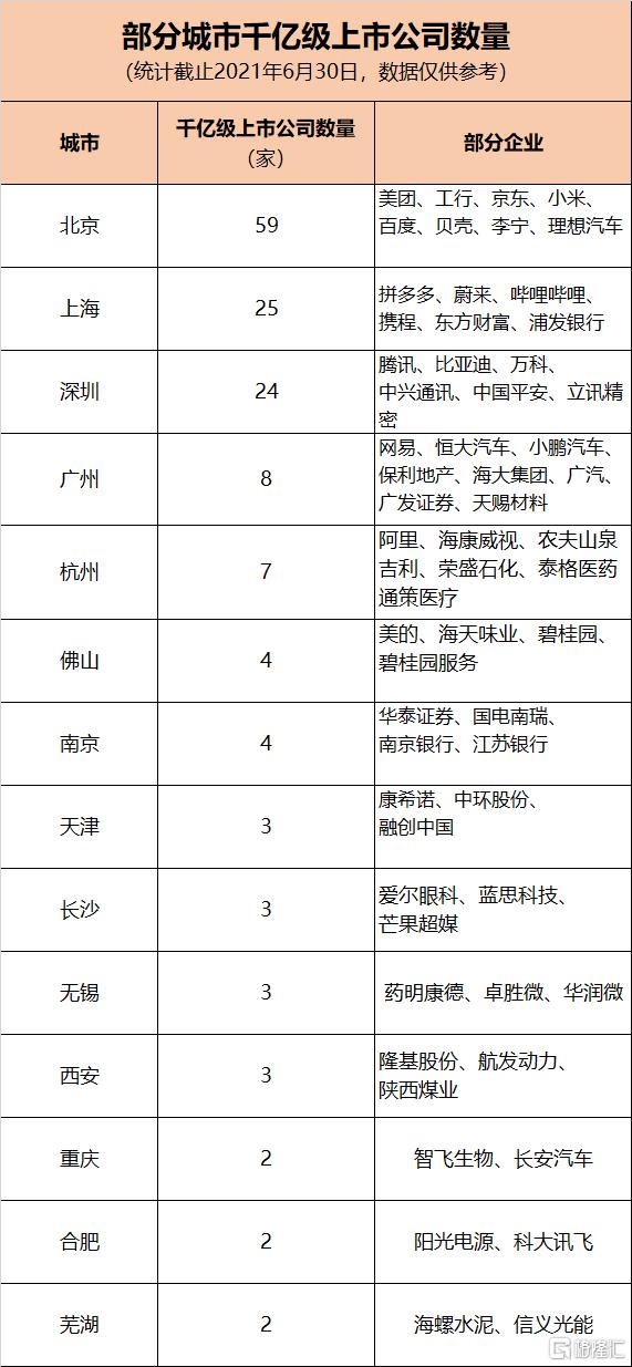 从城市分布来看,这254家千亿级上市公司中,北京59家,上海25家,深圳24家,广州8家,杭州7家,佛山4家,南京4家,长沙3家,无锡3家,西安3家。