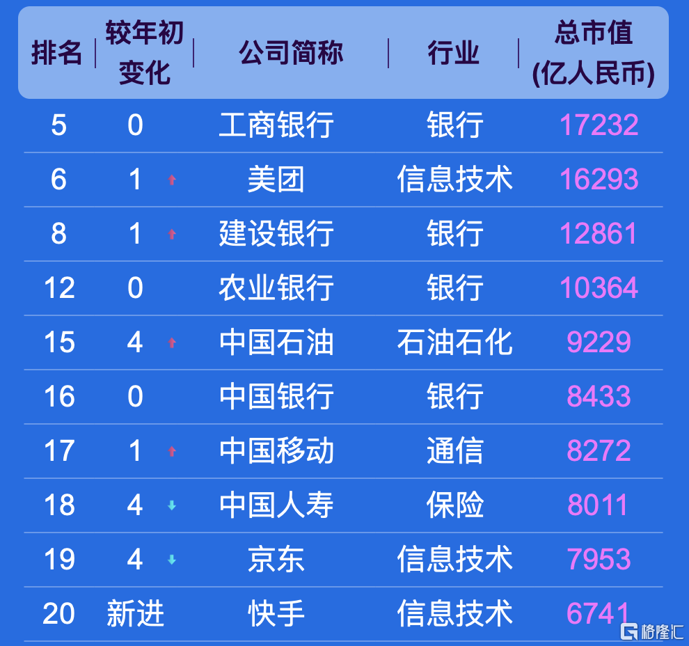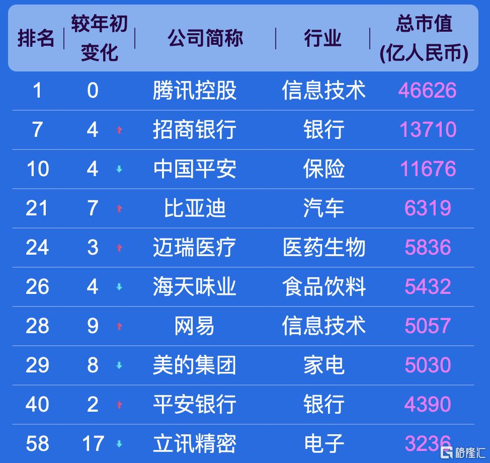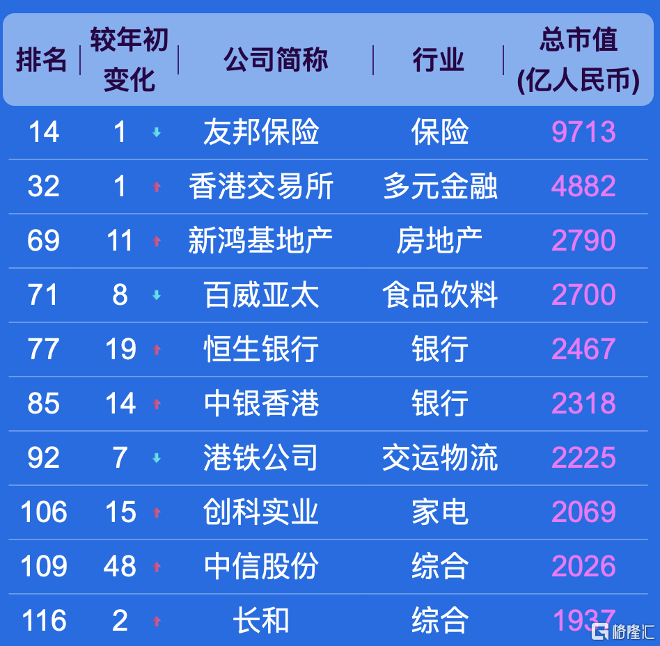 以下是香港排名前十的上市公司: