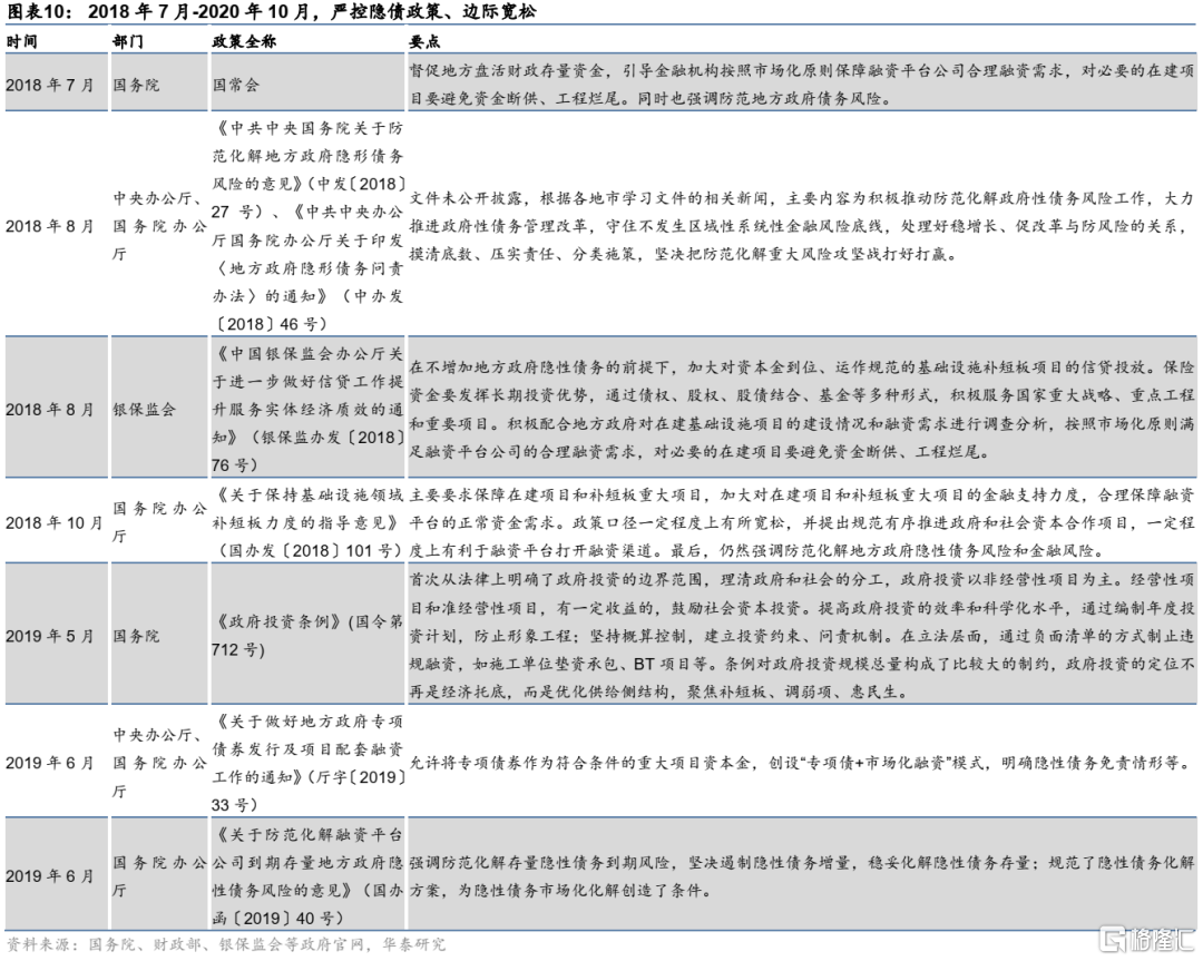 2018年7月-2020年10月,严控隐债格局下边际宽松