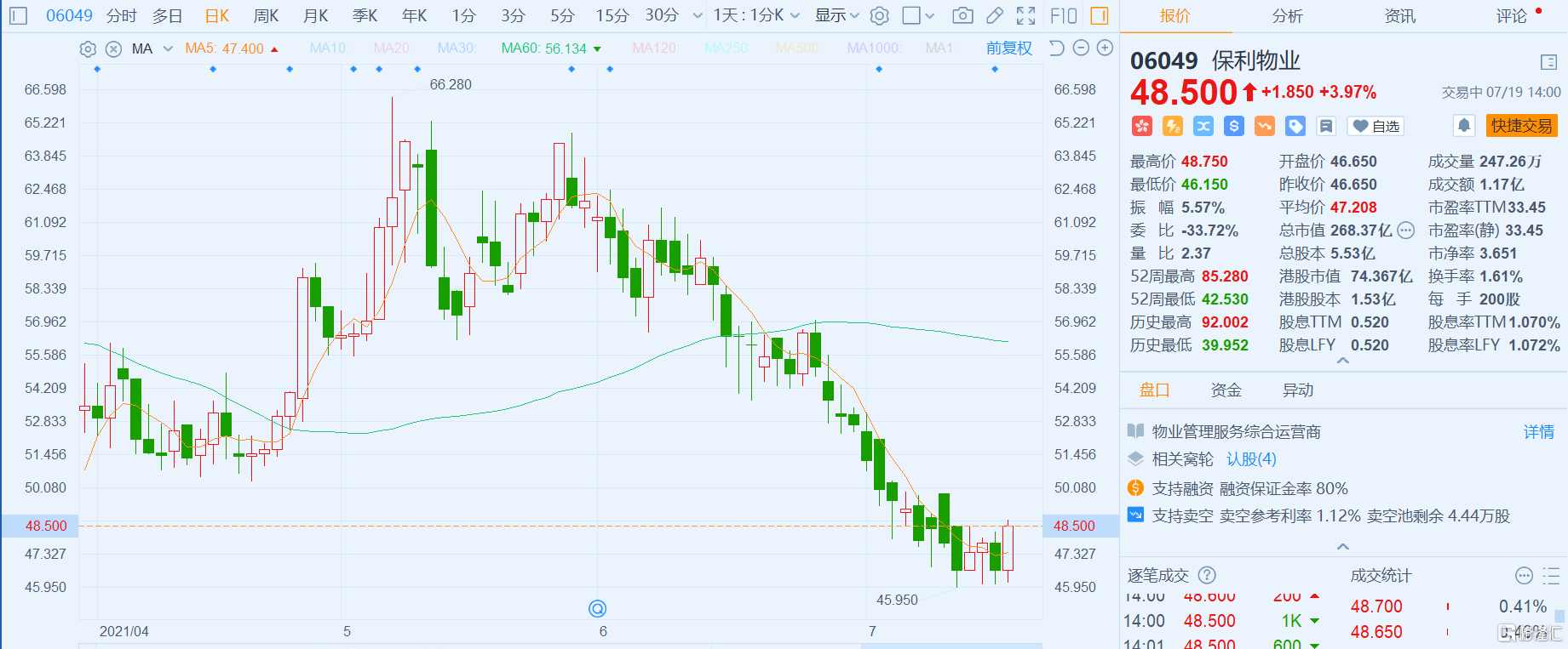 格隆汇7月19日丨保利物业(6049.HK)逆势涨约4%,报48.5港元,总市值268亿港元。保利物业公布,为进一步拓展增值服务业务,更好地挖掘专业服务有关资产增值空间,建议更改全球发售所得款项用途,将用于增值服务用途的所得款项分配比例由35%提升至62.5%,下调战略投资及并购的分配比例。公司还计划进一步开拓增值服务用途的范围。