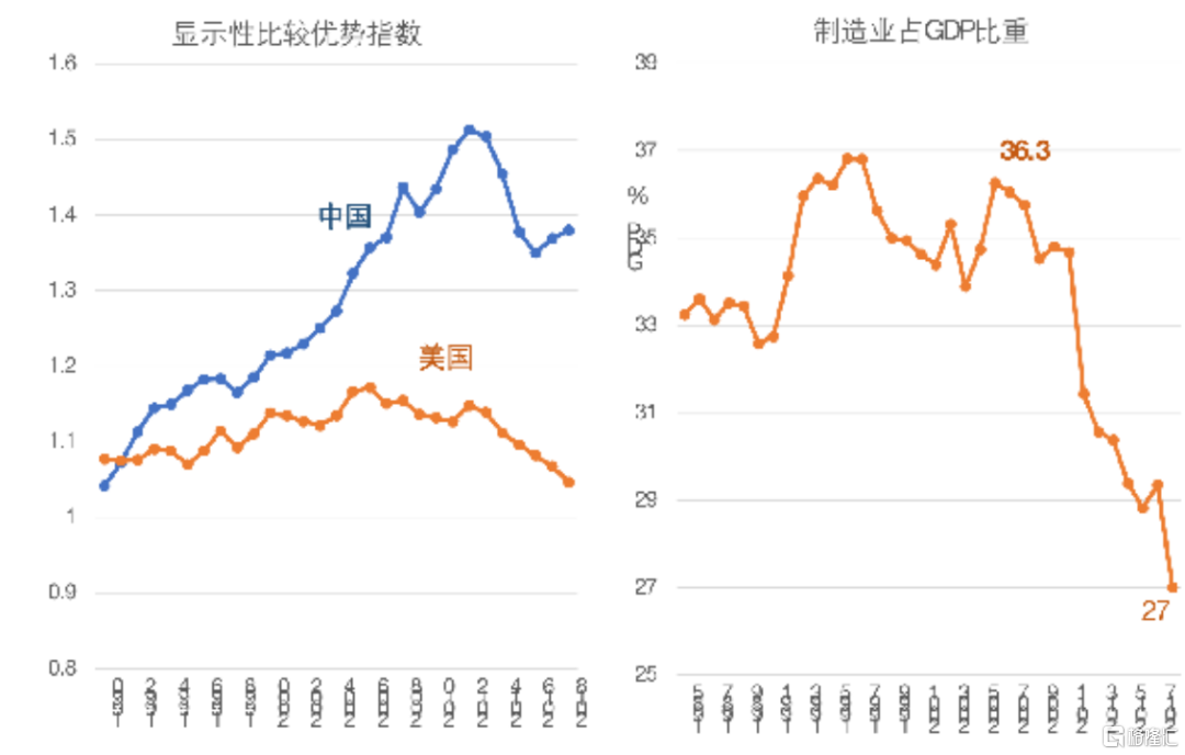 随着人均收入水平的增长,制造业比重确实存在着先上升后下降的趋势,但一般情况下,其只有在人均GDP达到两万美元后才会开始下降。而2006年我国这一比重开始下降时,我国人均GDP只有三千美元。我国制造业比重下降的发生远早于一般水平,这几乎是不可接受的。因此,必须要稳定制造业比重。