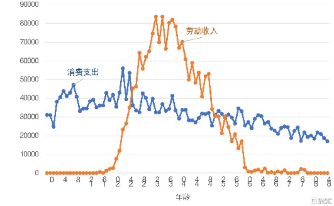 劳动年龄段处于挣钱的时期,但消费并不高,甚至逐年下降。其原因是双重的:一方面,所有社会保障的缴费负担都在这一群体身上,挤出了相当大的一部分消费;另一方面的原因可以称之为“现收现付悖论”。“现收现付”的意思是当前就业人口缴的养老保险费,国家直接支付了给现在退休的人,但等这批年轻人退休后,需要更为年轻的一代人缴费来养活。其悖论体现在,当前的人口抚养比在一代人老去后会发生改变,未必有那么多人能够支持这一代的养老金支付。无论是否读过萨缪尔森的经济学,每个人心里都会有一笔账,会从我们的经济行为中表现出来——劳动年龄段的人在缴纳了各种费用后,还会进行一些强制性和预防性的储蓄,未雨绸缪,甚至还要到自己不熟悉的领域做投资,买理财产品,被别人骗,这就是一部分人的命运。