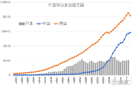 中国经济起步较晚,在90年代中期以后经济规模开始向日本靠拢,2010年超过日本并迅速跟日本拉开差距,目前中国的经济规模已经是日本的1.5-2倍。而在2008年全球金融危机之后,甚至在中国劳动年龄人口进入负增长之后,中国同美国的差距仍在缩小。