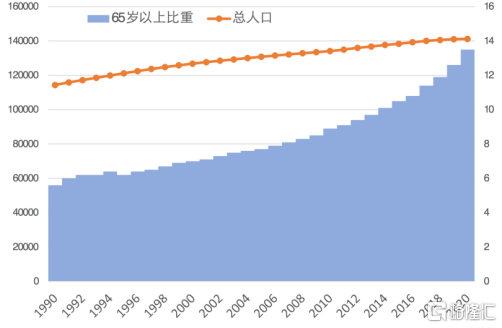 图1 总人口增长及65岁及以上人口比重