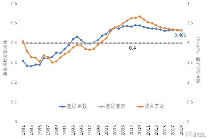 0.4是基尼系数的重要分界线,基尼系数高于0.4意味着收入差距较大,低于0.4才算收入均等。无论是基尼系数还是城乡收入差距,都显示近年来我国收入分配正在得到改善。但我国的基尼系数在离0.4还有很大距离时就难以继续下降了,这意味着仅靠初次分配是无法从根本上改善收入分配的。