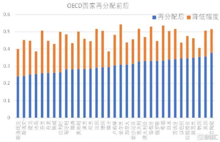图23 部分OECD国家收入再分配前后的基尼系数