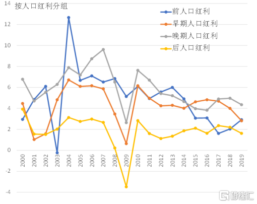 图5 按人口红利分组的GDP增长率