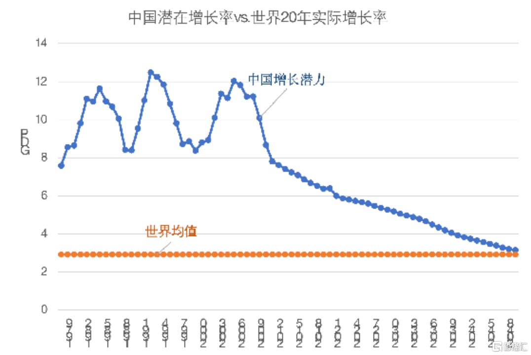 图7 中国潜在增长率VS世界实际增长率