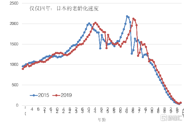 第二,短短几年之间人口结构可以产生巨大的不同。人口总体规模越大,不同也就越明显,日本就是一例。
